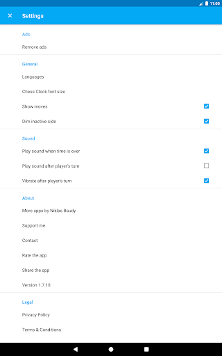 Additionally, the Chess Clock offers a way to customize the Chess Timer by using a custom chess watch theme. By default Chess Clock has a white and a dark theme.