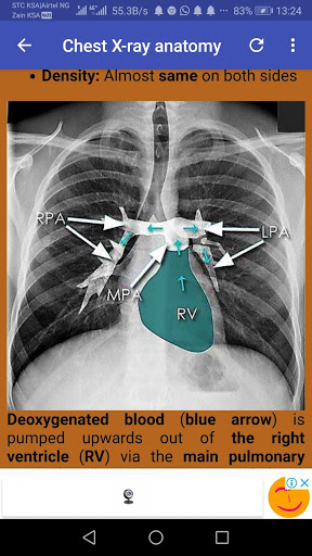 Chest X-Ray Interpretation App include anatomy & pathology of chest radiography