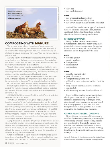 Chickens, a bimonthly magazine from the editors of Hobby Farms, provides expert advice about the nutrition, health, care and comfort of keeping a single backyard bird or a large country flock, as well as the care, collection and consumption of their eggs and meat. Each issue includes profiles of chicken keepers, coop maintenance and design tips, poultry breed descriptions, predator prevention ideas, health and nutrition articles, recipes, and news related to America’s favorite livestock. Chickens magazine targets people involved in the care and raising of chickens and other poultry, for eggs and meat or simply as pets, including country farmers, hobby farmers, urban farmers and everyone in-between.