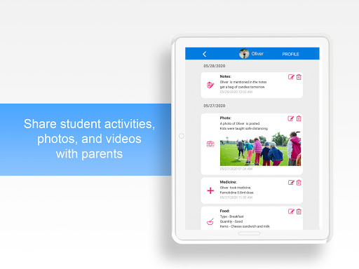Photo/Video Sharing - Share images or videos with parents instantly and keep them updated about their child daily activity.