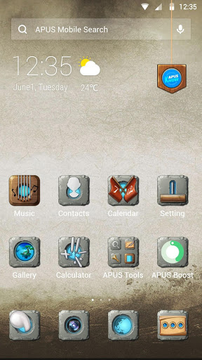 1. New Simple Stone Age APUS launcher free theme is free, but only compatible with APUS Launcher. If you want to apply it, please install APUS Launcher on your Android phone. Or download new theme and APUS Launcher. When you install APUS Launcher, there are variety of themes in APUS theme & wallpaper shop, such as phonex, lovely unicorn, pink diamond mickey, Red heart, luxury, gold, business, black, simple, magic, comic, football, basketball, cricket, Valentine's Day, New Year, Halloween, Christmas, cute cat and dog, butterfly, dawn theme. Install APUS launcher to enjoy more themes.