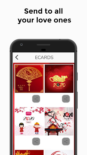 The Chinese New Year 2020 greeting cards are complete with colorful and beautiful new year greeting cards, animated greeting cards, the countdown to the Chinese New Year Celebration. The Chinese New Year apps contain many ecards to choose from to send wishes to your family and friends. Many interactive and cute animation greeting cards for you to share. Design on the Chinese New Year Greeting card is full of beautiful color and good quality of graphics makes you want to send them right away.