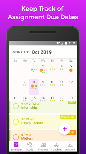 Personalize the colors in your class schedule, and choose Day, Week, or Month view so you always know what’s on your homework calendar at a glance.