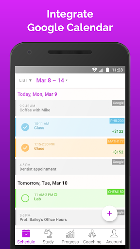 Get motivated to study and keep on schedule. When you check off items from your to do list, Chipper shows estimated "earnings" for your future salary just for sticking to the schedule in your student planner. These earnings show you the value of completing your work, and help you stay motivated.