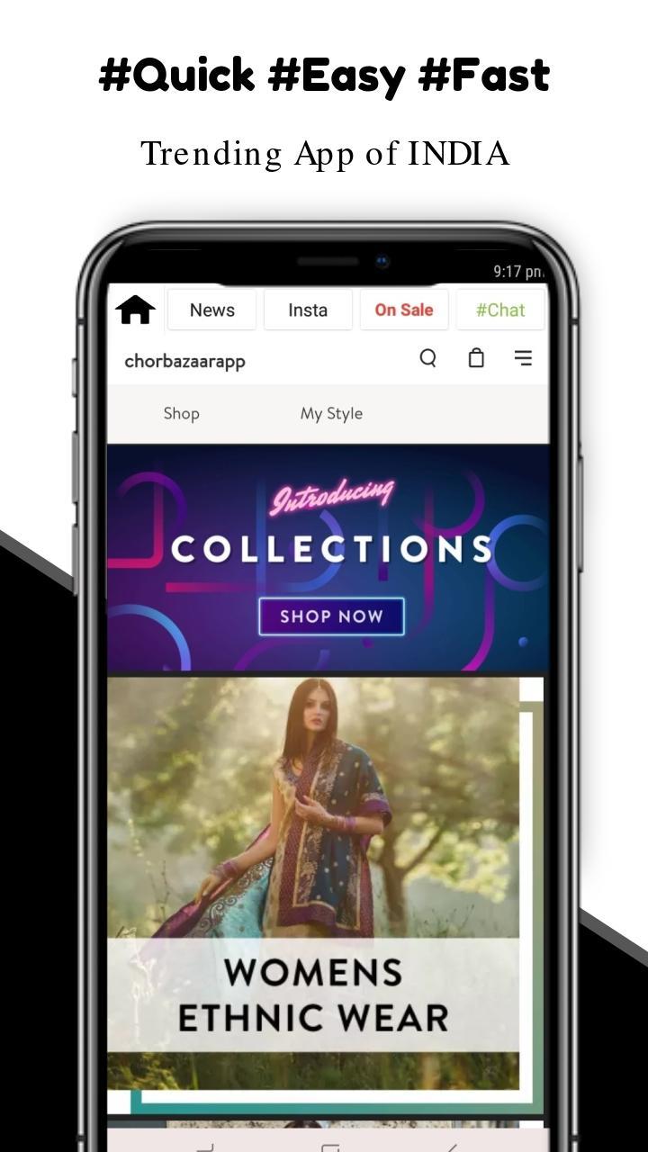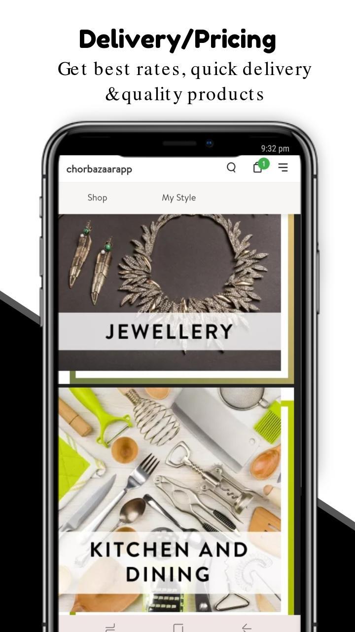 Online shopping with ChorBazaar is very easy as you get to shop from the comfort of your home and get products delivered at your doorstep. By downloading the ChorBazaar free online shopping app on your Android phone or tablet, you can effortlessly browse our massive collection of products from multiple categories including mobile phones, fashion wear, electronic devices, accessories and consumer durable. Wide range of sellers with variety of product collection from all over India. (Note:- Products & there images are strictly provided by sellers/manufacturer & and not by ChorBazaar App or its owner. There is return and replacement available in 5 days timeline in most categories. All details you share in app or at product page are in encrypted by seller and that does not belong to ChorBazaar App or its owner and other than in app details or ads please share your details at your own risk. Incase of any harm by the product or its service the ChorBazaar App or its Owners won't be responsible for that all orders details shipping and services or managed by third party. We use Third-party service / sellers & Ads for more email us on chorbazaarapp@gmail.com. You will definitely enjoy shopping within our app. Happy Shopping!!!