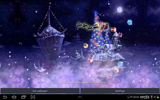 Merry Christmas. Christmas Snow Fantasy is a live wallpaper. This is a fantasy tale which gives the christmas spirit high in the snow sky between the stars and the moon. With little lovely house, big christmas tree, christmas lights and Santa Claus who gives a lot of presents when he is shaken. The fantasy christmas tale has two christmas carols and many customisable options. That makes this wallpaper your own Christmas fantasy. Choose the snow shape and how much snow you wish, put wind as you wish , change the christmas lights, play with the stars and more.