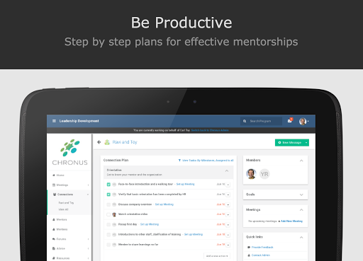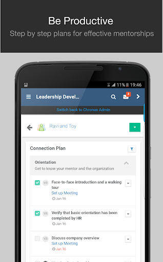 Be Productive: Mentoring doesn’t just happen. With the Chronus app, we will help guide you every step of the way.