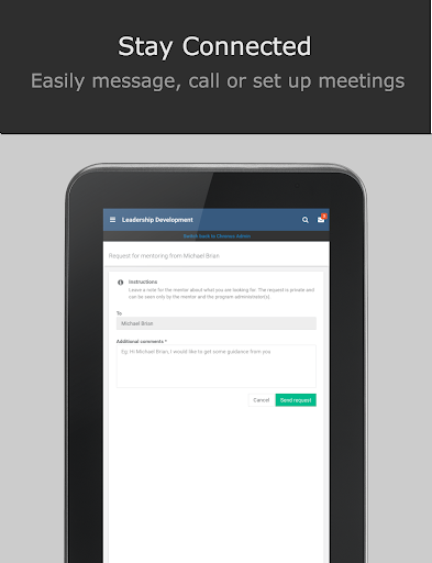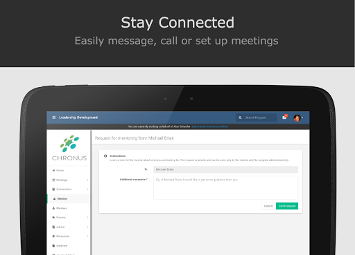 Stay Connected: Effective communication is key to create a productive mentoring experience. With the Chronus app, you are connected anytime, anywhere with your mentor/mentee.