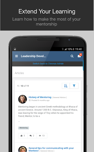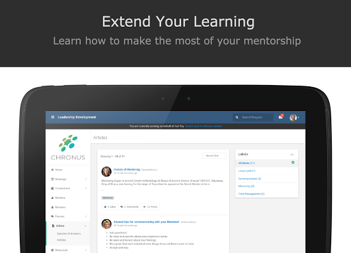 With the Chronus’ mobile app, you can engage in mentoring, buddy programs, peer coaching, and more while on the go. App users must be a participant of a Chronus based organizational