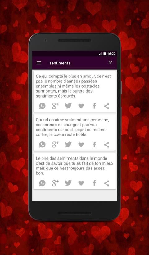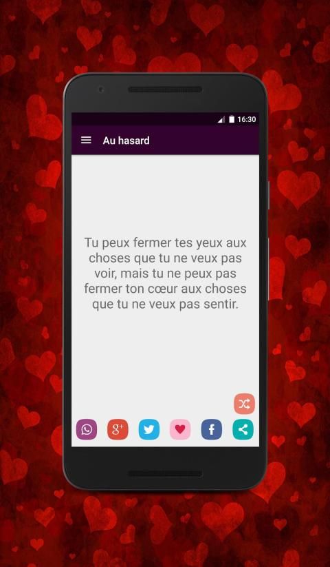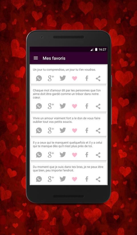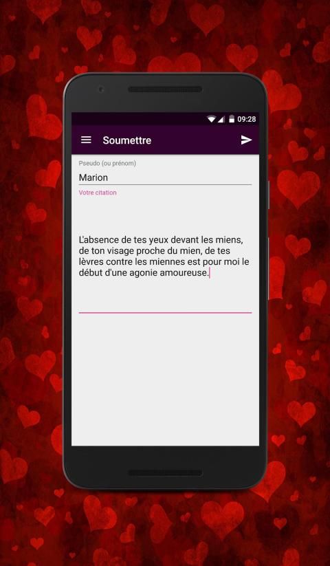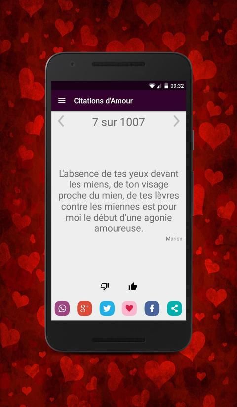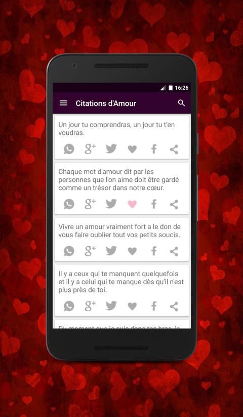 Actuellement l'application compte plus de 12 000 citations, tu trouveras forcément de beaux messages d'amour qui feront craquer ton amoureux ou ton amoureuse.