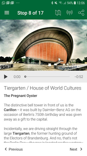 Please note that the app requries GPS localisation to work porperly. Without active GPS you have to start each audio explanation manually, which takes a lot of the fun out of it.