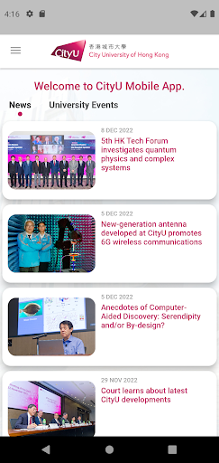 CityU Mobile is an official City University of Hong Kong mobile app developed by CityU IT Services. Being one of the top rated University apps in Hong Kong, CityU Mobile provides a convenient platform for CityU staff, students and visitors to access important information about the University.