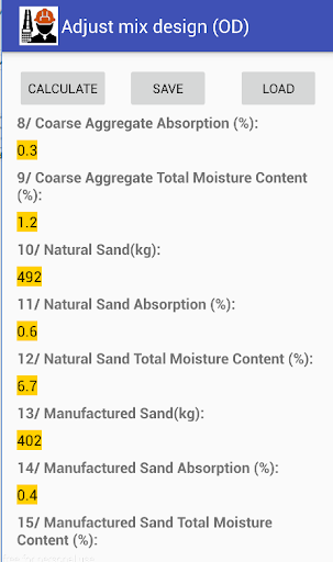 - Add Save/Load operation for Adjust mix design (OD). Help user save concrete mix proportion and reuse conveniently. Don't need to remember many data when user reuse.