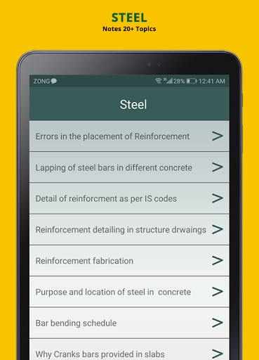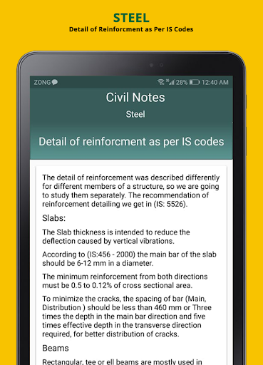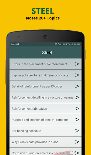 Civil engineering is one of the best and oldest disciplines in engineering work. In this civil engineering app (Civil Notes), we cover up to 150 topics related to quantity surveying, steel, and concrete. The quantity surveying is the important branch of civil engineering, because, without proper quantity calculations, the construction work will not proceed smoothly. The civil engineering discipline deal in maintaining, building, and designing in our modern society foundations. The field of civil engineering can touches in our daily life, such as in Buildings, Roads, Bridges, Tunneling, and much more.