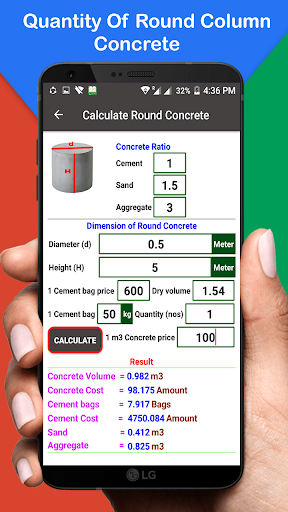 Civil Site Engineer app is a free calculator with the following functionalities: