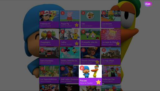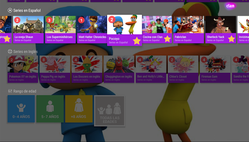 Clan is a window to the best of the web content for children of RTVE and the Spanish TV kid's channel. A selection of shows like "Pocoyo",