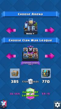 The higher your Arena, the more Clan Cards you can earn! With this app you will know the number of Clan Cards that you can get from the Clan Cards Chest, depending on your Arena!