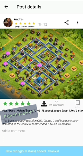 Save an unlimited number of clash base maps (layouts) in the cloud and have your builder skills tested and rated by other.