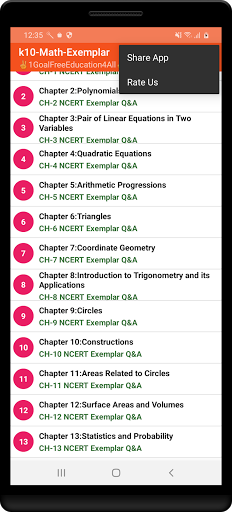 Right now we added the Solutions of Math(English Medium) N.C.E.R.T. Exemplar of class 10th in this app, which help you get the answers in on just single click and through which you get better understanding on the questions.