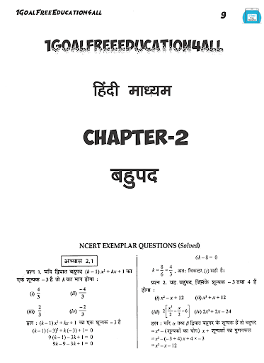 Right now we added the Solutions of Math(Hindi Medium) N.C.E.R.T. Exemplar of class 10th in this app, which help you get the answers in on just single click and through which you get better understanding on the questions.