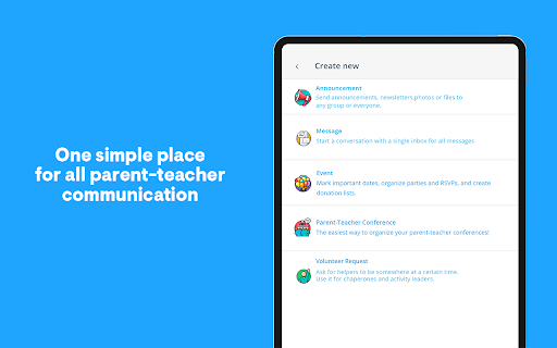 - Parent teacher conferences, calendars, paperwork, volunteering, newsletters and more features at your fingertips.