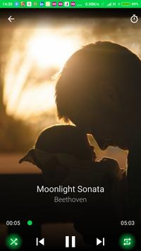 The app has timer, you can set it and go to sleep, the music will be stopped automatically. The app has shuffle mode to play music in random order and repeat mode to play the same song again automatically.