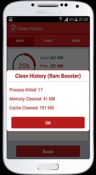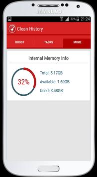 Clear History (Ram Booster) is an app that every Android device should have installed which will help you to boost your ram with One-Click function that will clean your and speed up your Phone by goes through your phone and cleans up your system memory, increasing the performance of your phone or tablet, and improving your battery life. And the best part is, it is totally free. This speed booster app can make games on your phone run faster by clearing up resource draining applications.