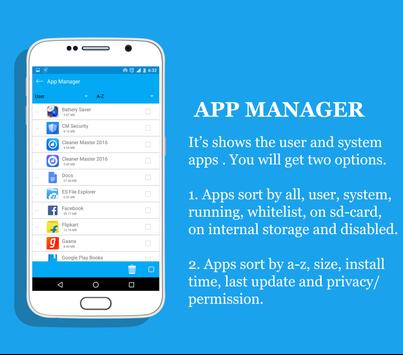 There are number features in single app like as junk cleaner. memory cleaner master, mobile optimizer and app manager for making your device more faster, cleaner master work similar as original clean master android app just lite in size.