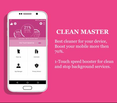 Clean Master 2016 is a small, fast and free Android cleaner and Ram booster app.