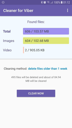 Finds and removes old media files in Viber chats and frees up space on your smartphone