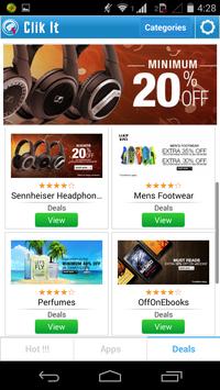 Clik It allows user to check and get the relevant applications, based on their profile and provides information about various deals at the same time in the palm of their hand.