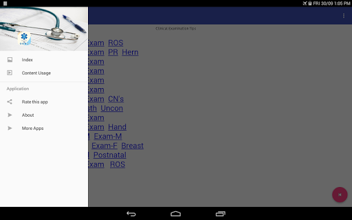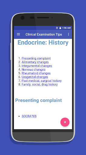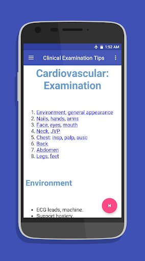 Clinical examination tips app has been developed basically for medical students, healthcare professionals and doctors which is helpful in their clinics and exams, and considered a source for a quick overview of the patient physical examination.