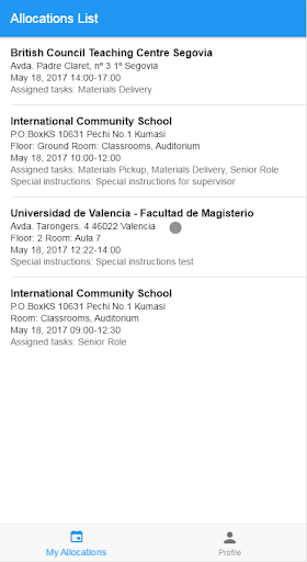 This app is for the use of British Council Examination Services team. It is used to record the arrival and departure times of team members from exam venues and it has been designed exclusively for the use of the British Council.