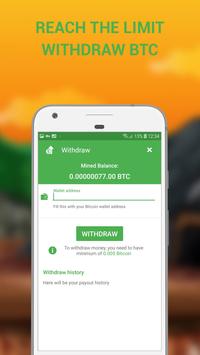 Mining a free bitcoin using our cloud bitcoin miner. Using this remote miner bitcoin, you can forget about expensive equipment or the price of electricity. Use this app to view statistics on your bitcoin mining cloud. Simple remote Bitcoin earnings in your pocket.