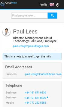With the new CloudPages mobile app you can search your entire CloudPages for Google Apps organisational structure from your phone and then simply tap with the app to connect via phone or email.