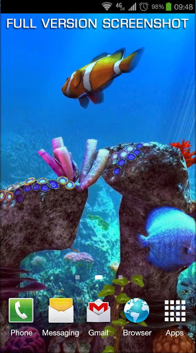 One of the most amazing 3D underwater live wallpapers on Google Play for your phone or tablet! Stunning clownfish aquarium inhabited by realistic fully 3D colorful fish!
