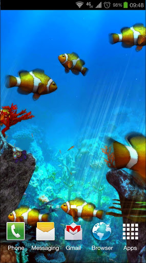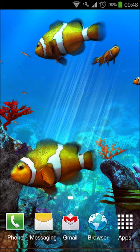 Installation: The main screen (long press) → Live Wallpaper → Clownfish Aquarium 3D FREE