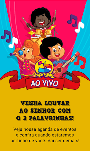 Focado especialmente nas crianças de 0 a 7 anos de idade e nos pais, o projeto 3 Palavrinhas nasceu para modernizar e eternizar as canções que fazem parte do universo infantil dos cristãos brasileiros. Pensando em fazer mais do que apenas distrair a garotada, nossas músicas falam do amor de Deus e passam mensagens com valores cristãos.