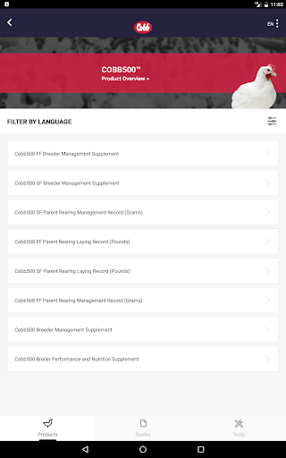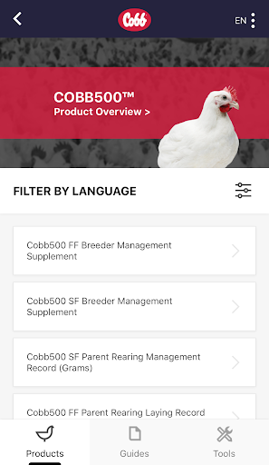 Cobb Connection includes management guides designed to assist you in building successful management programs and highlight critical factors that are most likely to influence your flock’s performance. This is a completely localized application, available in English, Spanish, Portuguese, Turkish, French, Arabic, Russian, Mandarin, Dutch, German, Italian, and Indonesian. Some guidelines may need to be adapted locally depending on your particular needs.