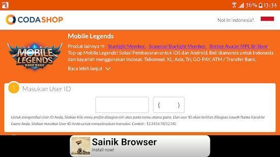 Tempatnya aplikasi no. 1 untuk aplikasi gratis, game dan video. 30,000+ Pengguna mendownload Coda Indo - Top up Diamond ML versi terbaru di 9Apps secara gratis! Bukan sekedar aplikasi, ini akan mengajarkanmu cara menggunakannya. Aplikasi HOT ini di rilis tanggal 2018-05-23. Itu dia! Kamu sudah selesai?