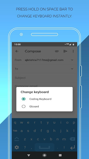 Coding keyboard is the one-stop solution to make programming fast & easy and comfortable in mobile phones. Numbers, characters, and special characters are all within one simple keyboard view. Enable Coding keyboard and use it on any software you wish to.