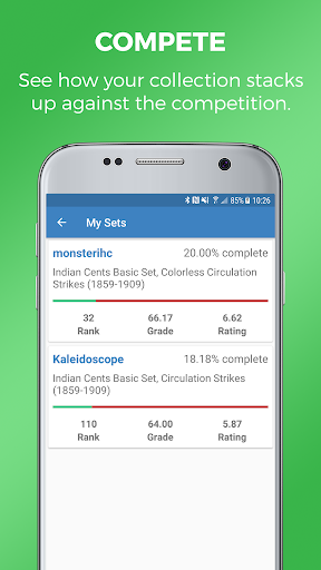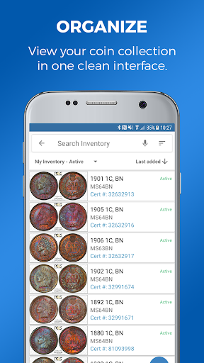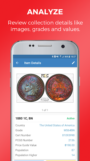 Coin collectors, organize your entire PCGS-graded coin collection in this free, easy-to-use collection management app. Upload coin images and compete for the best sets with fellow numismatists from the convenience of your Android device.