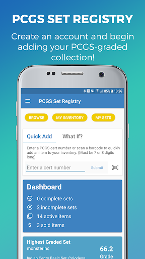 · Scan a PCGS-graded coin’s barcode to determine whether or not it will upgrade your set using the “What If?” function