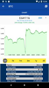 Show you details and charts (with different time periods i.e 24 Hrs, 1week ,1 month, 1year etc) of a given coin. Also you can zoom in the chart and get the price in a certain date by touching it. Check bitcoin live.
