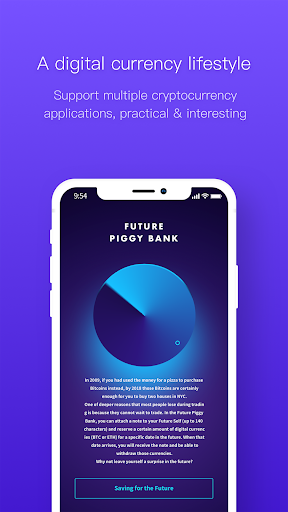 4.Future Piggy Bank. Most people lose money because they cannot wait for the right timing to trade. We have built a Future Piggy Bank for you, in which you can attach a note to your Future Self and reserve a certain amount of digital currencies (BTC or ETH) for a specific date in the future. When that date comes, you will receive the note and be able to withdraw those currencies. Why not save some Bitcoins and Ethereum for your future self?