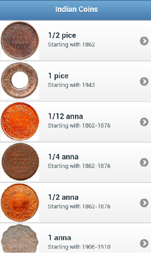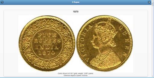This application show different types of circulating coins produced for use in the British colony of India, and the subsequent independent republic of India.