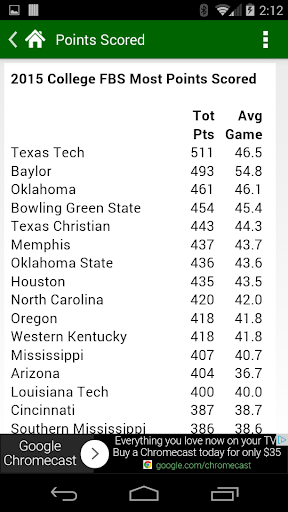 Quickly check what teams are scoring the most points or the fewest. And click to see who's leading the nation in rushing, passing and receiving.