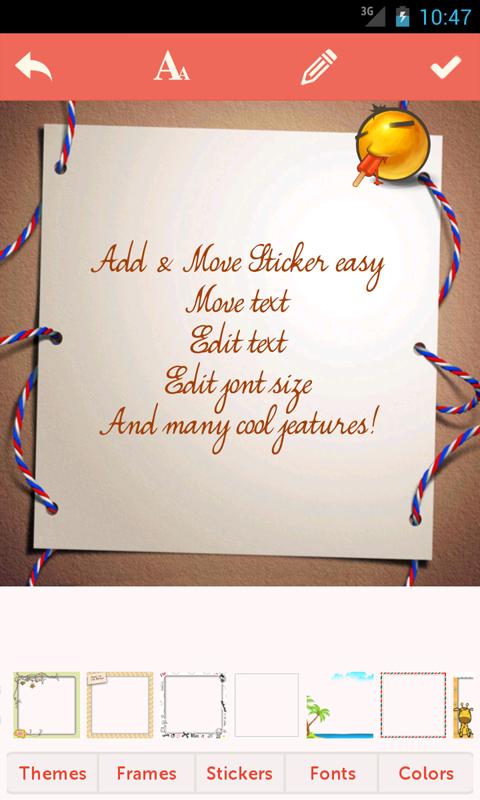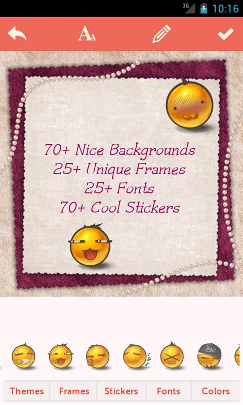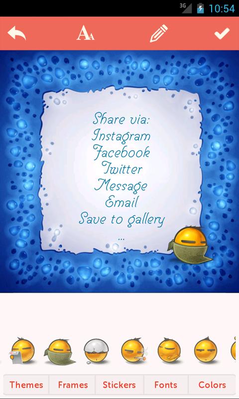 Create beautiful graphical text messages to be shared via Instagram, Facebook, Twitter or save to gallery