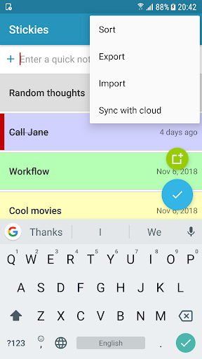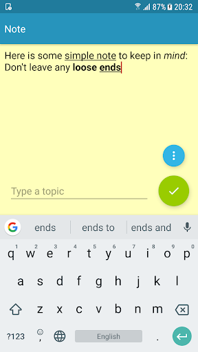 This is a simple notepad app that gives you a quick and easy way of keeping all your notes, memos and TO-DO lists on the phone.