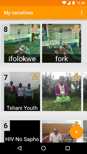 Each story can include any number of media frames. Each individual frame of the story can include an image or photo, up to three layered audio or music tracks, and text content. Anything in a frame can be edited at any time – for example, you can pause audio recording and then resume later, or load pictures from your media library. All elements of each frame are optional. For example, Com-Phone can also be used as an annotated photo diary, a simple audio recorder, a text and sound tool for discussion about current events, or even a multimedia survey app.